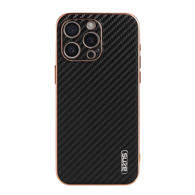 AZNS iPhone 15 Pro Max Fodral - Elektropläterad Kolfiber PU+TPU - Svart