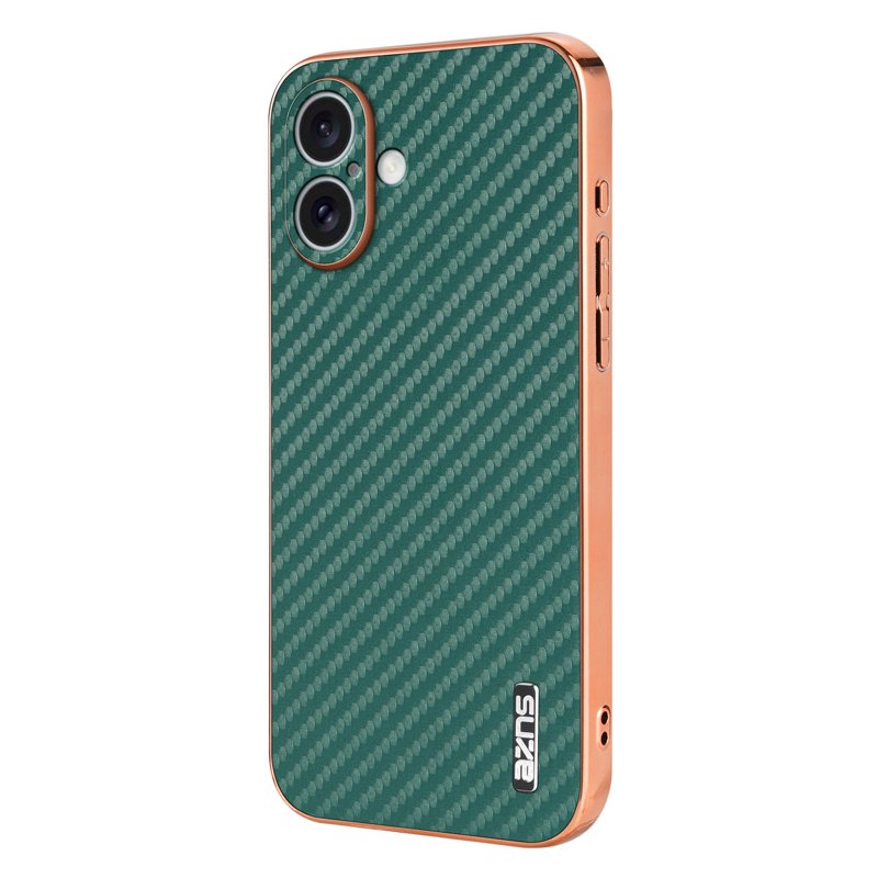 AZNS iPhone 16 Plus Fodral - Elektropläterad Kolfiber PU+TPU - Grön