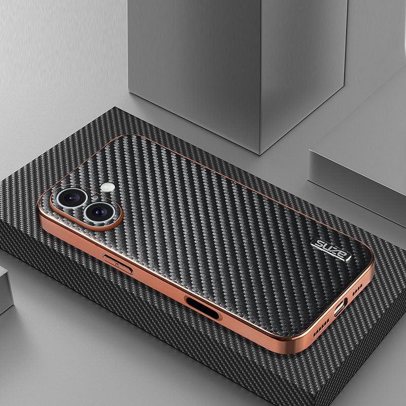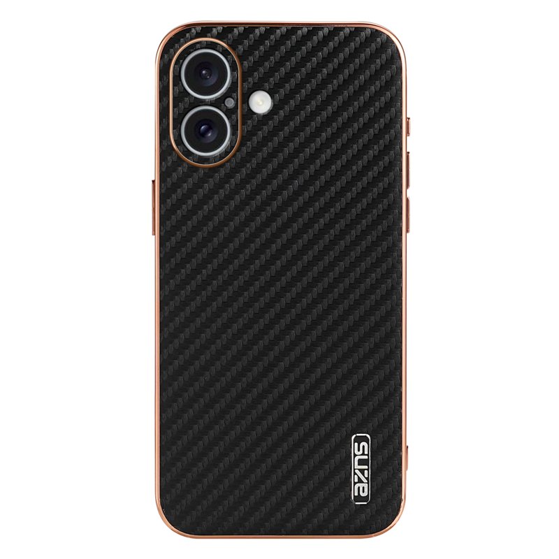 AZNS iPhone 16 Plus Fodral - Elektroplätering Kolfiber PU+TPU - Svart