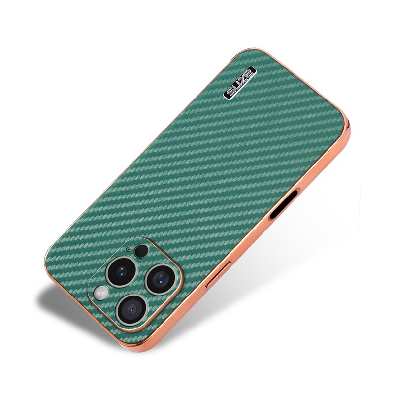 AZNS iPhone 16 Pro Max Fodral Äkta kolfiber PU+TPU - Grön