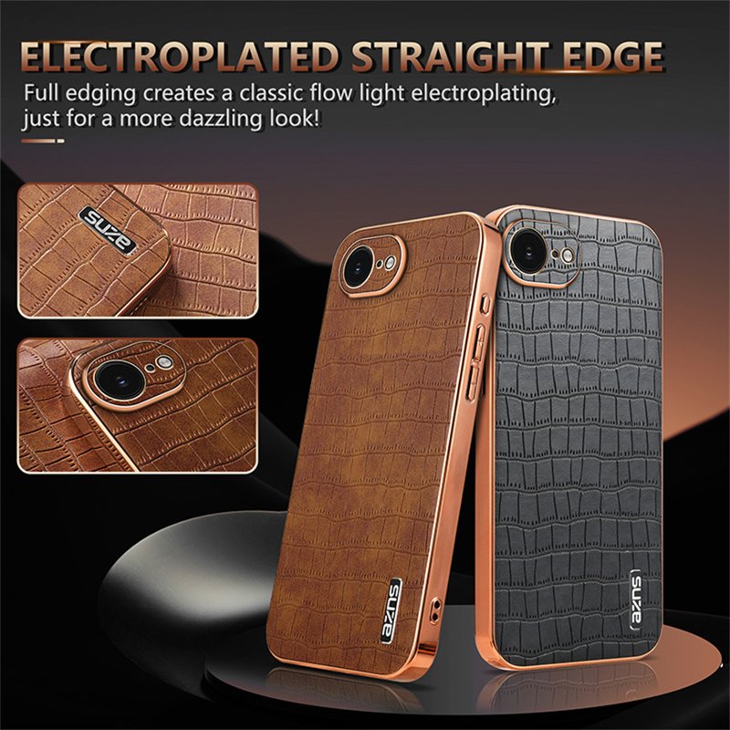 AZNS iPhone 16e Fodral Electroplating Krokodil PU + TPU i grön är det perfekta valet för den stilmedvetna användaren. Med sitt eleganta krokodilmönster och högkvalitativa material erbjuder detta fodral både skydd och stil. Skydda din iPhone 16e med ett fodral som kombinerar funktionalitet och lyx.