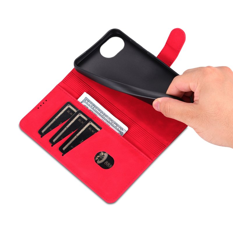 AZNS iPhone 16e Fodral PU Läder Plånboksfodral - Röd
