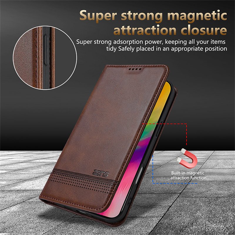 AZNS iPhone 17 Fodral i äkta läder är den perfekta lösningen för att skydda din telefon med stil. Detta plånboksfodral kombinerar högklassigt PU-läder med en hållbar TPU-inre del. Det erbjuder både funktionalitet och elegans, vilket gör det idealiskt för den moderna användaren.