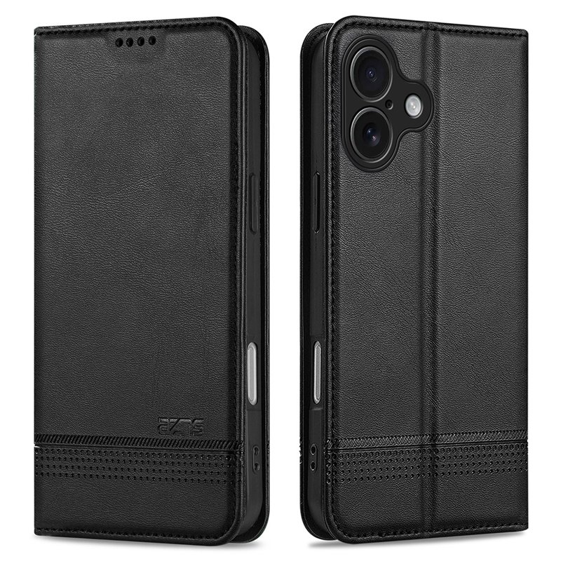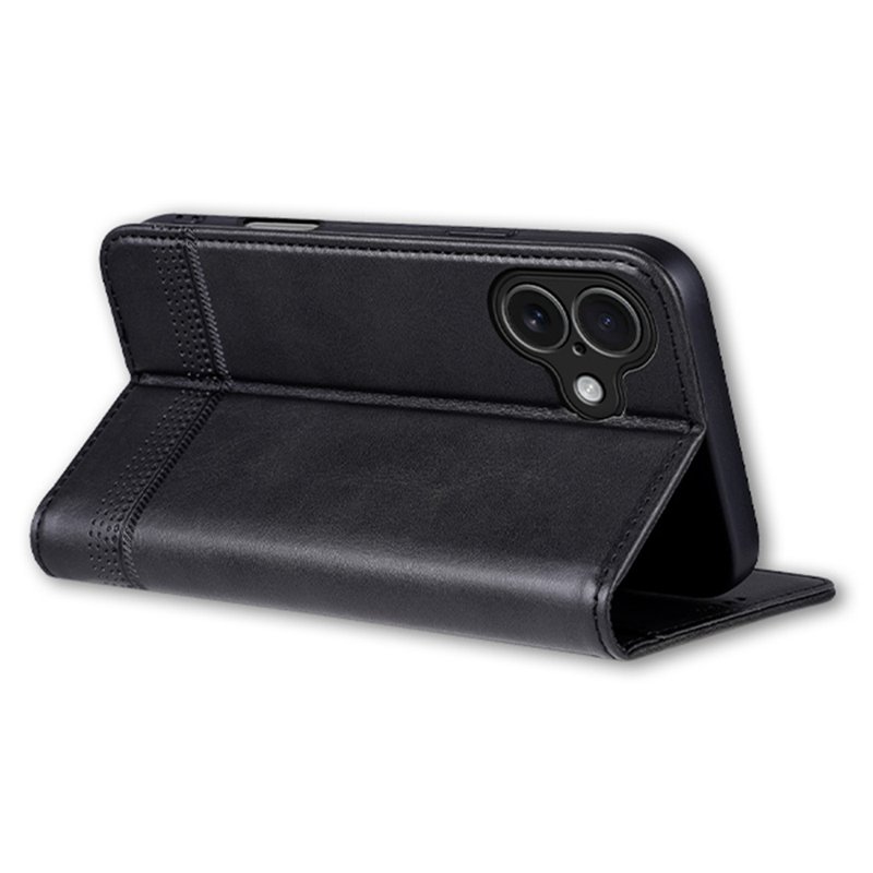 AZNS iPhone 17 Fodral Äkta läder Plånboksfodral - Svart