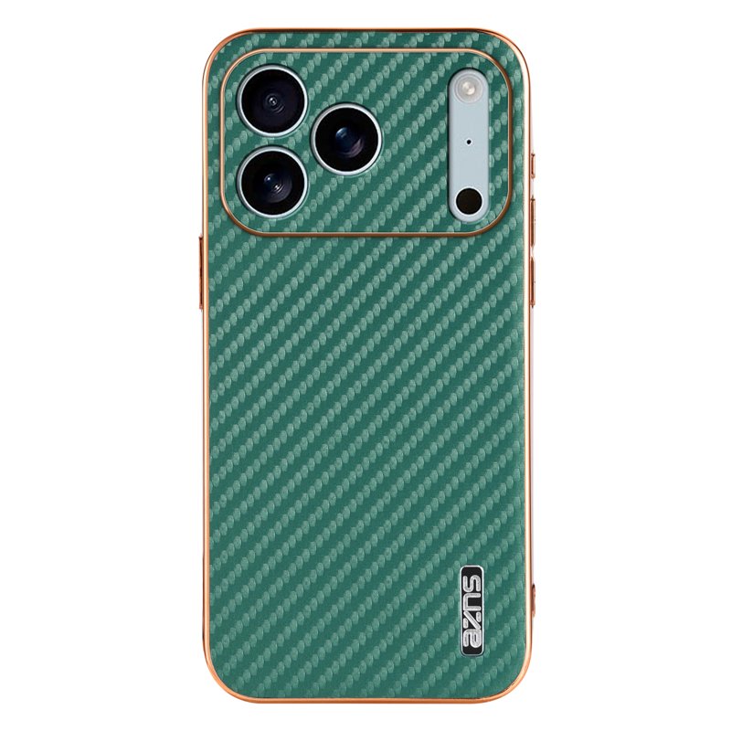 AZNS iPhone 17 Pro Fodral Electroplating Carbon Fiber PU + TPU - Grön