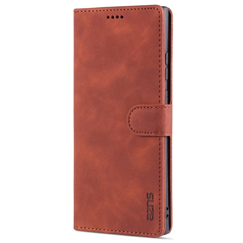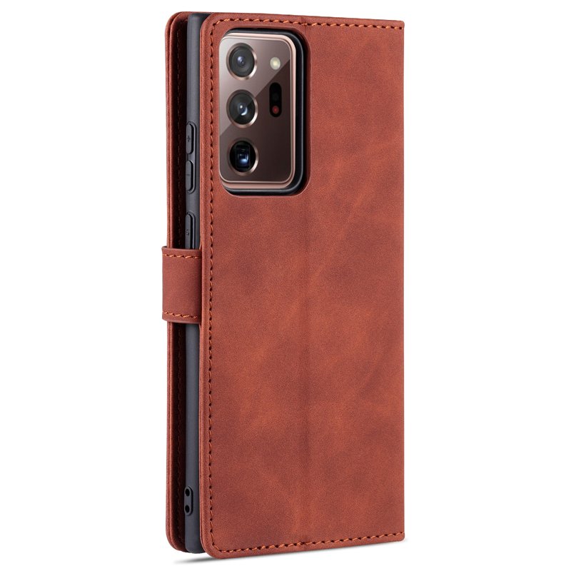 AZNS Samsung Galaxy Note20 Ultra Skal i äkta läder erbjuder stil och funktionalitet. Denna bruna plånboksmodell skyddar din telefon samtidigt som den ger plats för kort och kontanter. Med smart design och högkvalitativa material är detta skal perfekt för den moderna användaren.