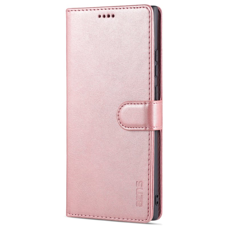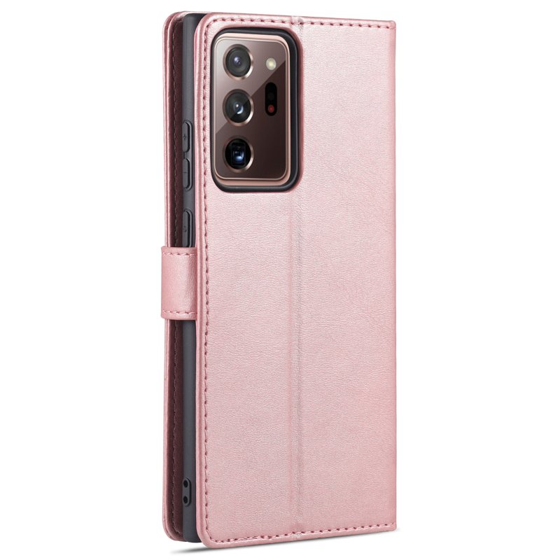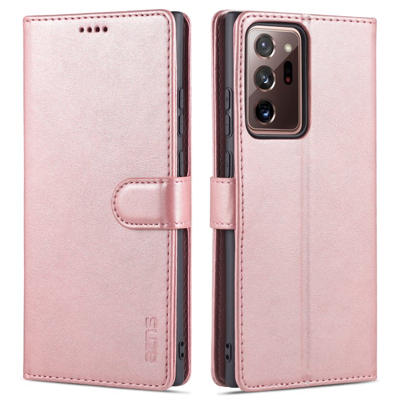 AZNS Samsung Galaxy Note20 Ultra Skal i äkta läder erbjuder stil och funktionalitet. Med en elegant design i roséguld skyddar den din telefon samtidigt som den ger praktiska lösningar för kort och kontanter. Perfekt för den moderna användaren som värdesätter både estetik och säkerhet.