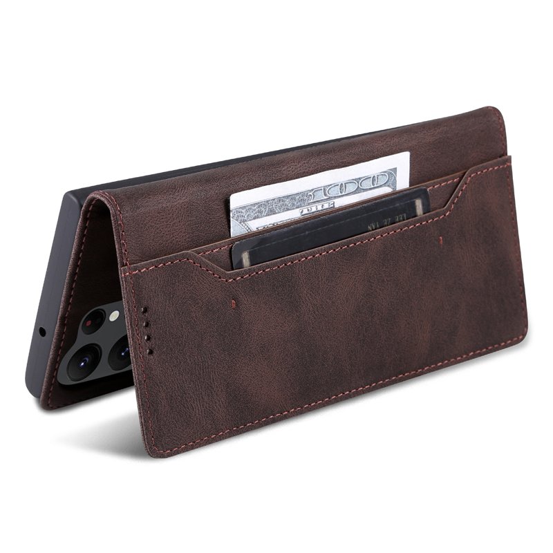 AZNS Samsung Galaxy S23 Ultra Fodral PU Läder - Brun