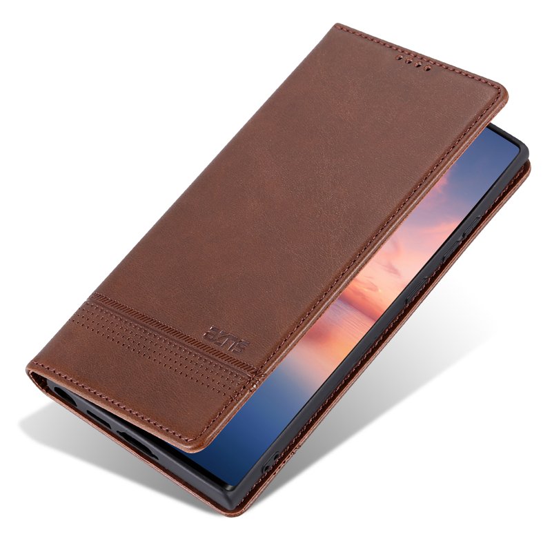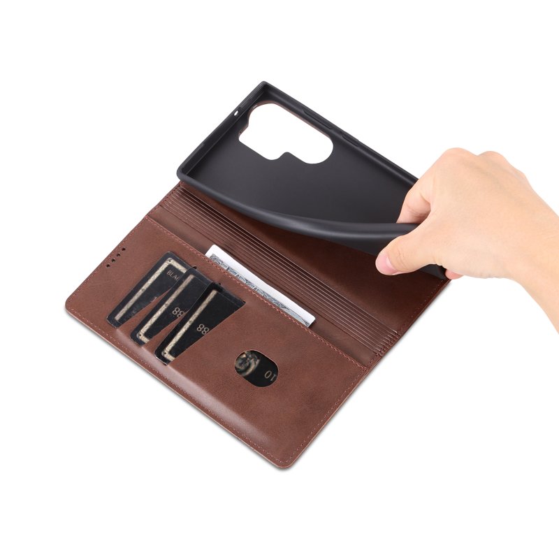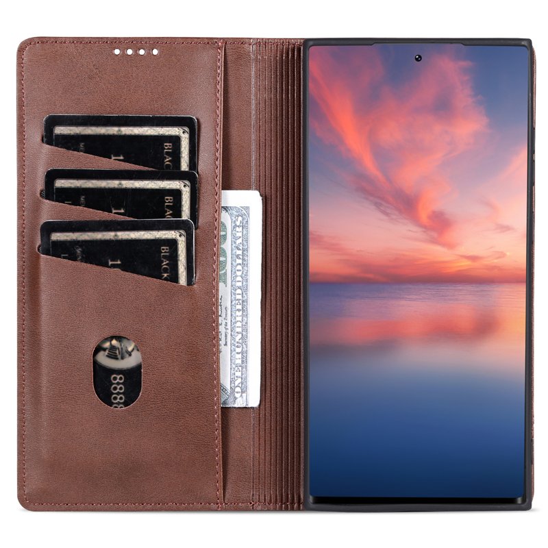 AZNS Samsung Galaxy S24 Ultra Fodral i Äkta Läder - Kaffe