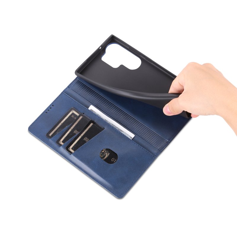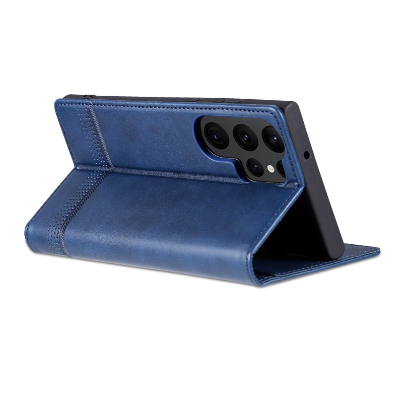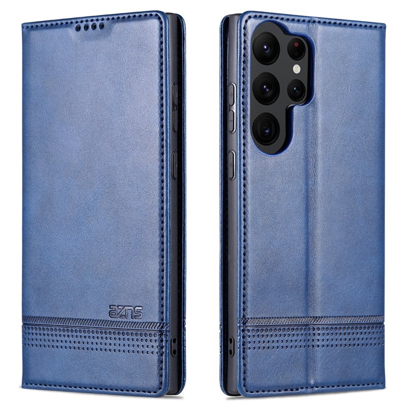 AZNS Samsung Galaxy S24 Ultra Fodral i äkta läder är det perfekta valet för dig som vill skydda din telefon med stil. Det mörkblå fodralet kombinerar högkvalitativt PU-läder med en hållbar TPU-inre del. Fodralet erbjuder både funktionalitet och elegans, vilket gör det idealiskt för vardagligt bruk.