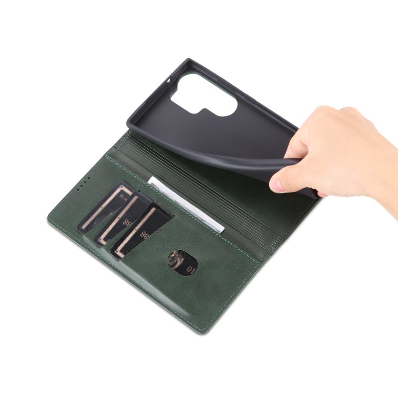 AZNS Samsung Galaxy S24 Ultra Fodral - Äkta läder - Mörkgrön