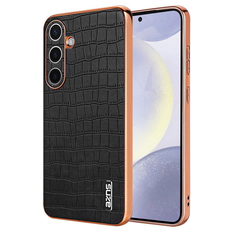 AZNS Samsung Galaxy S25 Fodral Electroplating Krokodil PU+TPU i svart kombinerar stil och funktionalitet. Med sitt eleganta krokodilmönster ger det en lyxig känsla. Det hållbara materialet skyddar din enhet samtidigt som det erbjuder ett bekvämt grepp. Perfekt för den som vill ha både skydd och stil.