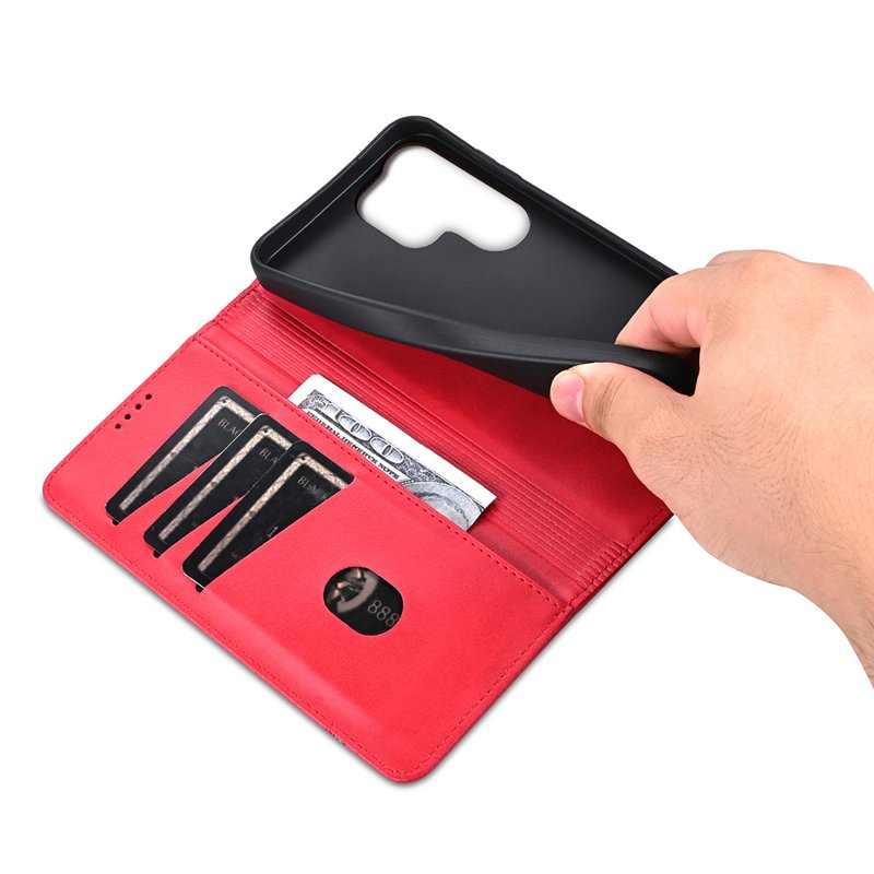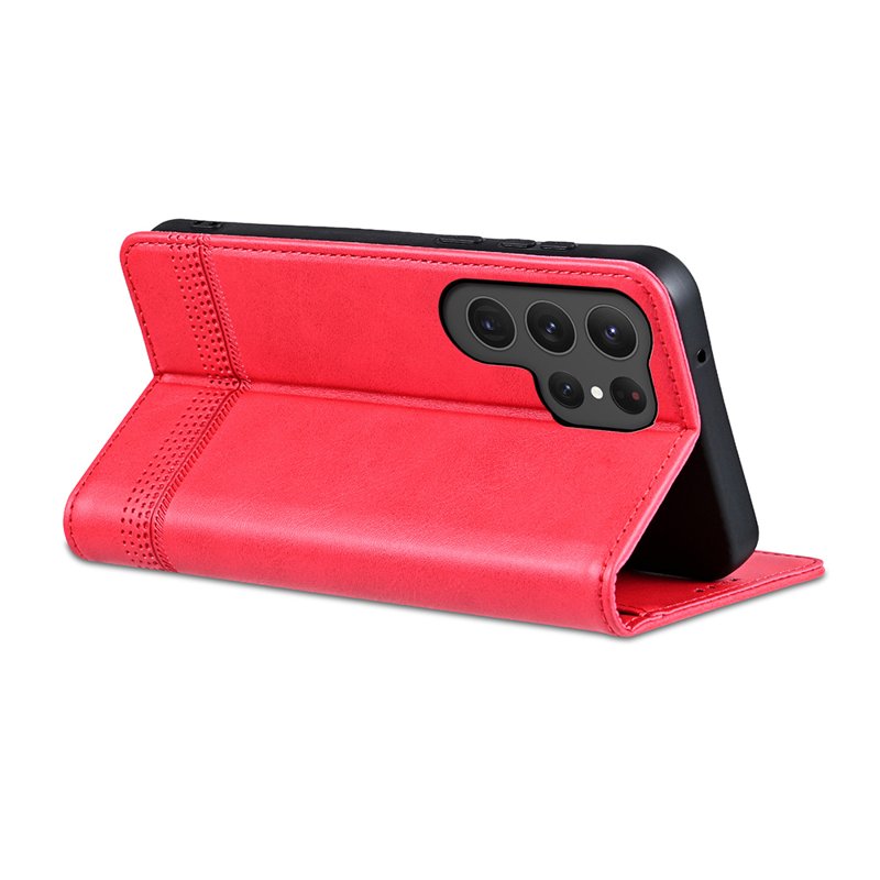 AZNS Samsung Galaxy S25 Ultra Fodral i Äkta Läder - Röd