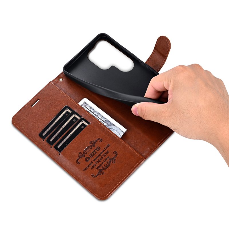 AZNS Samsung Galaxy S25 Ultra Fodral i anti-scratch konstläder är den perfekta lösningen för att skydda din telefon. Med sitt eleganta bruna utseende och funktionella design erbjuder detta fodral både stil och säkerhet. Det är utformat för att ge fullständig skydd och bekvämlighet för din Samsung Galaxy S25 Ultra.
