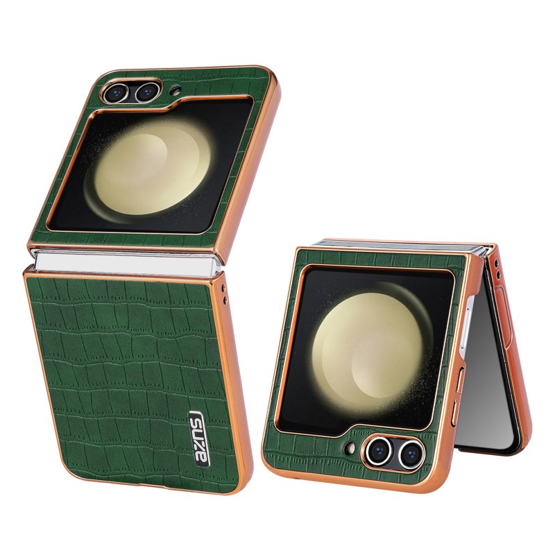 AZNS Samsung Galaxy Z Flip5 Fodral i Äkta Läder - Grön