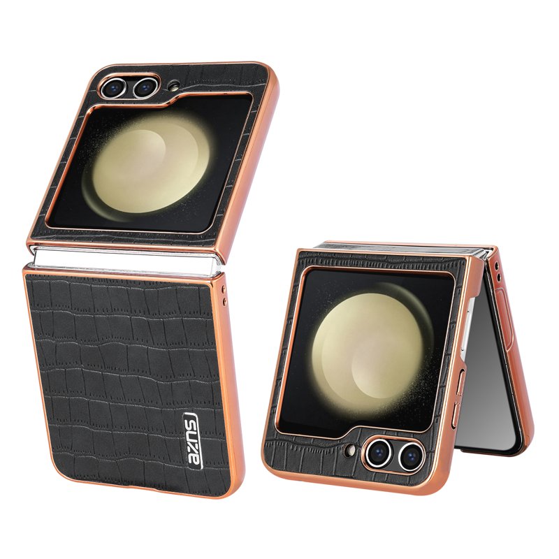AZNS Samsung Galaxy Z Flip5 Fodral Crocodile Textur PU+PC - Svart