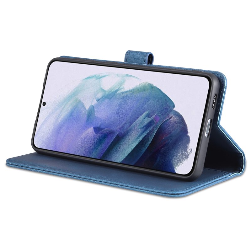 AZNS Wallet Stand Samsung Galaxy S22 Fodral Äkta läder - Blå
