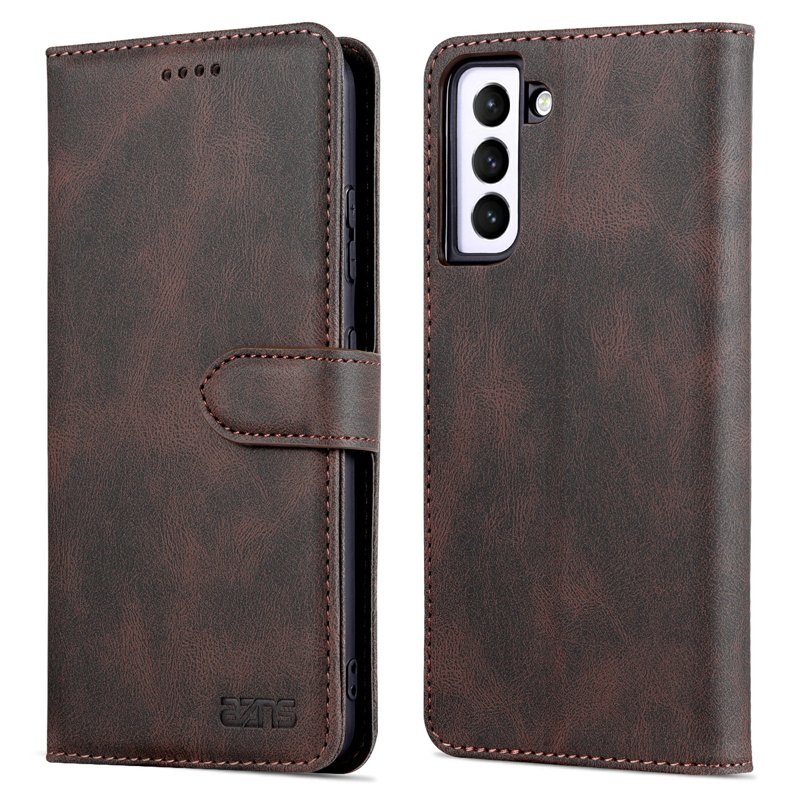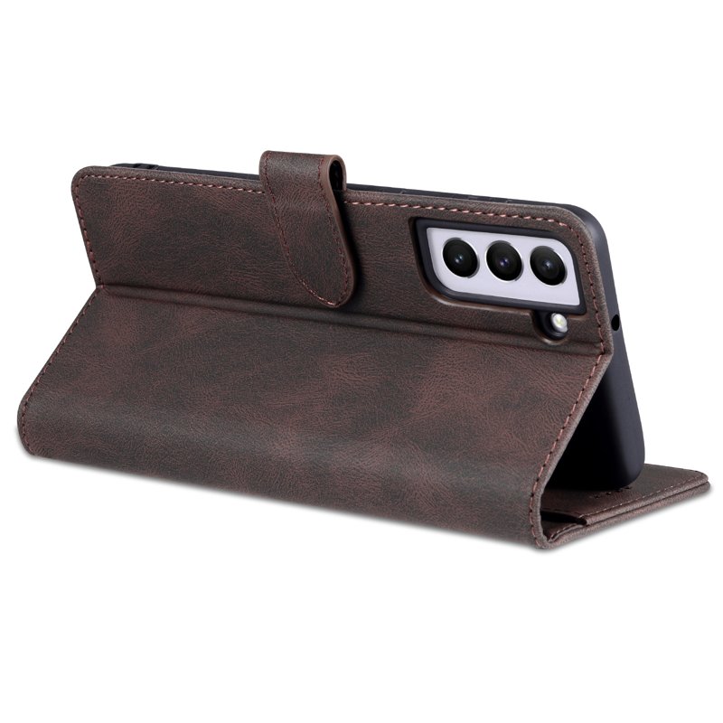 AZNS Wallet Stand Samsung Galaxy S22 Fodral Äkta läder - Brun