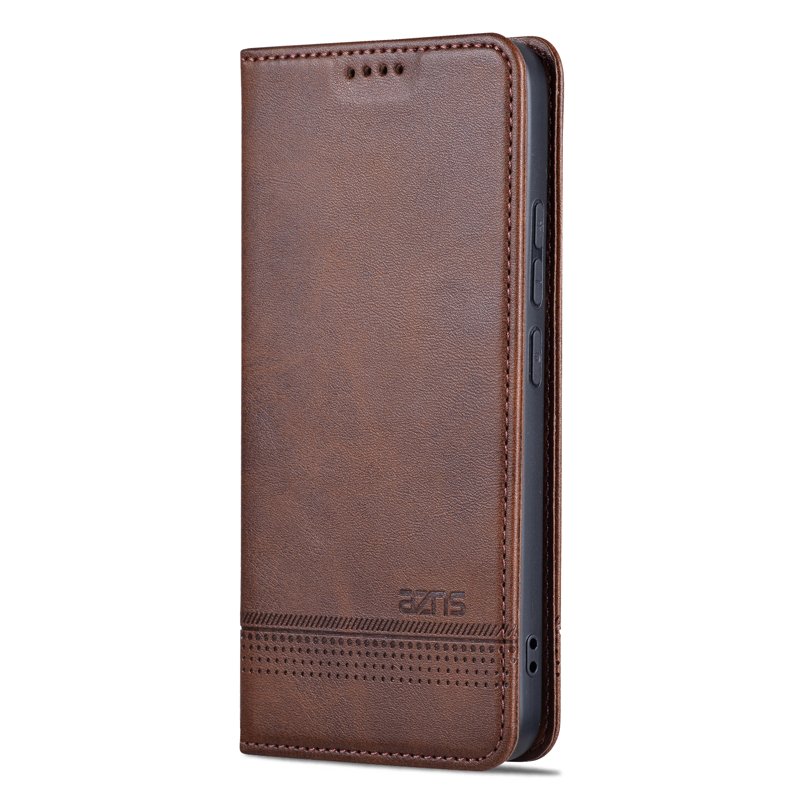 Handla denna produkt AZNS Xiaomi 14 Fodral Anti-Scratch Ställ Wallet - Äkta läder - Kaffe