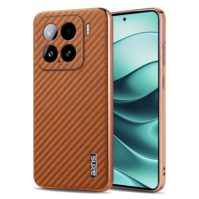 AZNS Xiaomi 15 Fodral - Electroplating Carbon Fiber PU+TPU - Brun