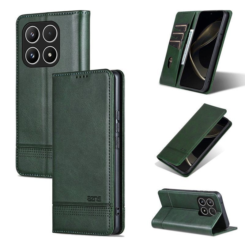 AZNS Xiaomi 15T Fodral Äkta läder Plånboksfodral - Grön
