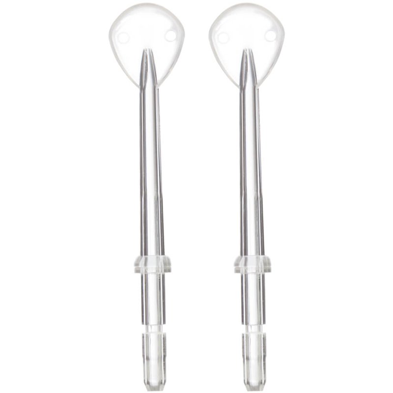 Munstycket roterar 360 grader för att rengöra de ställen som är svårast att nå. Enheten levereras komplett med sju munstycken: Tre standardmunstycken för hela familjen, samt speciella munstycken för tungan, fästen, tandkött och konstgjorda strukturer. Munstyckena förvaras bekvämt i ett speciellt fodral under enhetens lock.