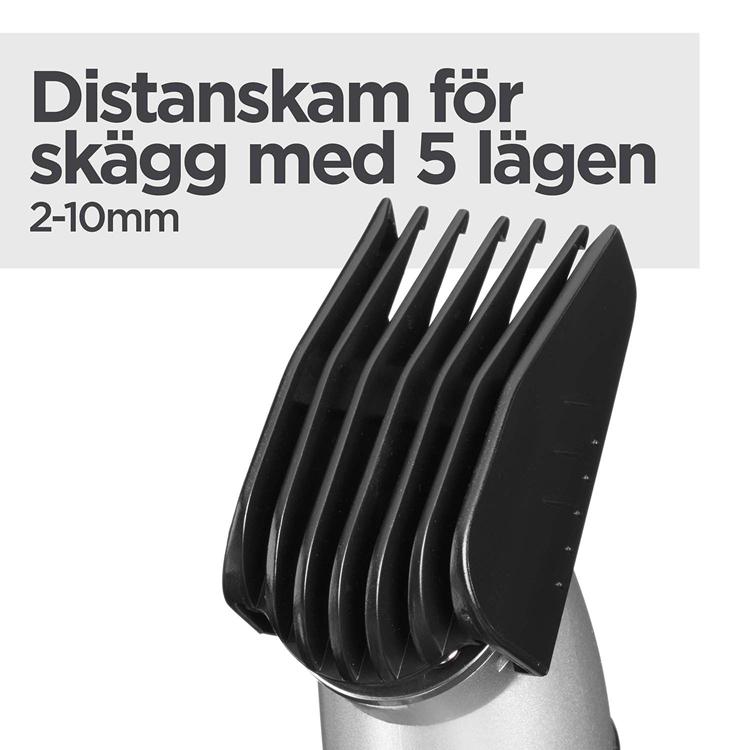 Distanskammar – sex kammar med längder mellan 0,4–10 mm för skägg, kropp och hår.