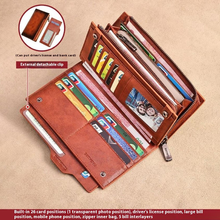 Maximal organisering – 26 kortplatser, fotofack, körkortsficka, stor sedelsektion, telefonfack, innerficka med dragkedja och 5 kvittofickor.