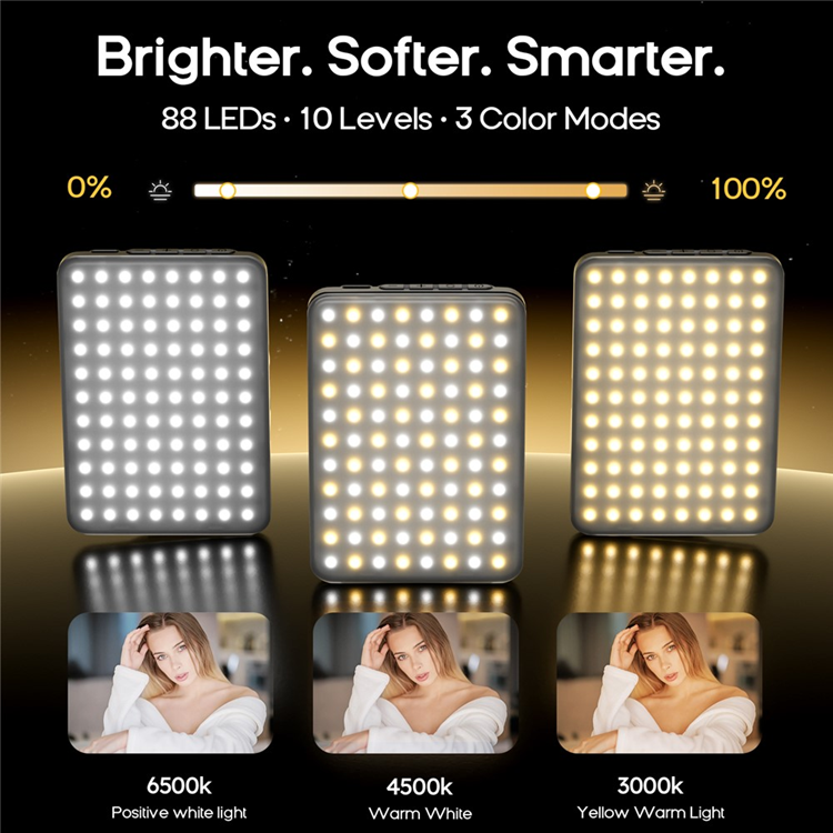 • 88 LED-lampor (44 varma + 44 kalla) för jämn belysning utan skuggor