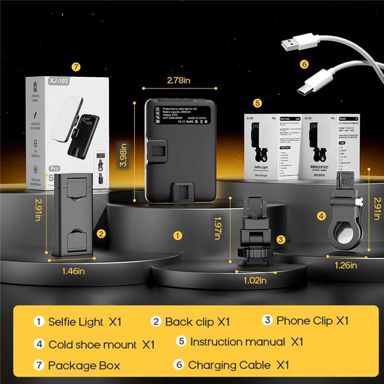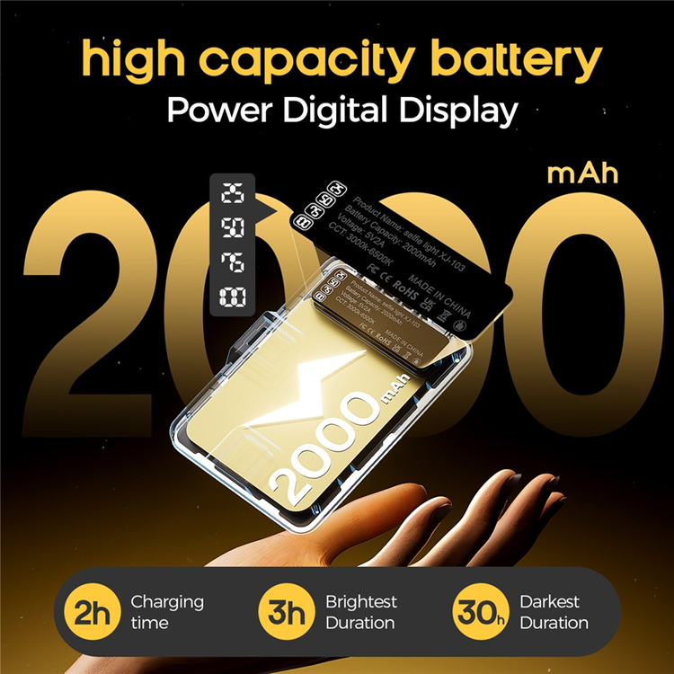 Bärbar Selfielampa för Liveströmmande Videokonferenser 2000mAh XJ103 Pro