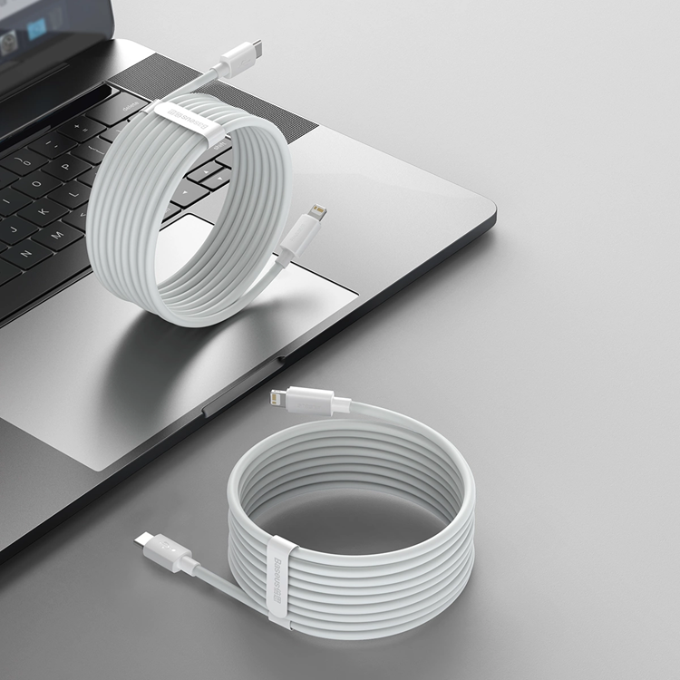 Baseus Lightning/USB-C Kabel 20W 1.5 m 2st Simple Wisdom - Vit
