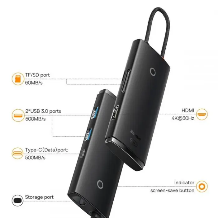 Har din bärbara dator eller dator inte tillräckligt med portar som du kan använda för vardagsarbete eller underhållning? Saknar du ytterligare avancerade standarduttag? I så fall är Baseus-gadgeten perfekt för dig. En enhet kommer att förse dig med ett antal ytterligare portar som du kommer att kunna använda utan problem. Det kommer att få dig att upptäcka nya möjligheter med din dator.