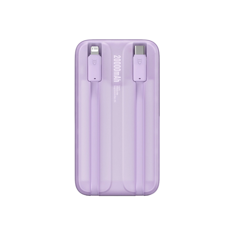 - Futuristisk design: Den pastellfärgade och genomskinliga höljet ger powerbanken ett modernt utseende.
