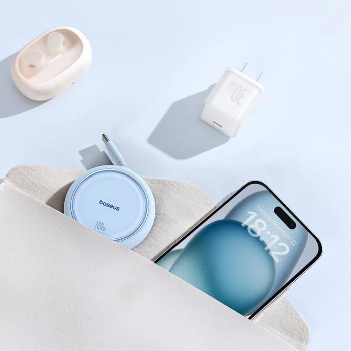 Baseus Retractable Free2Draw Mini USB-C - USB-C 100W 1m - Blå