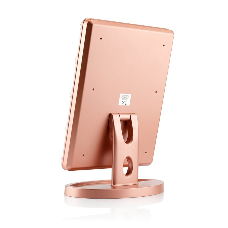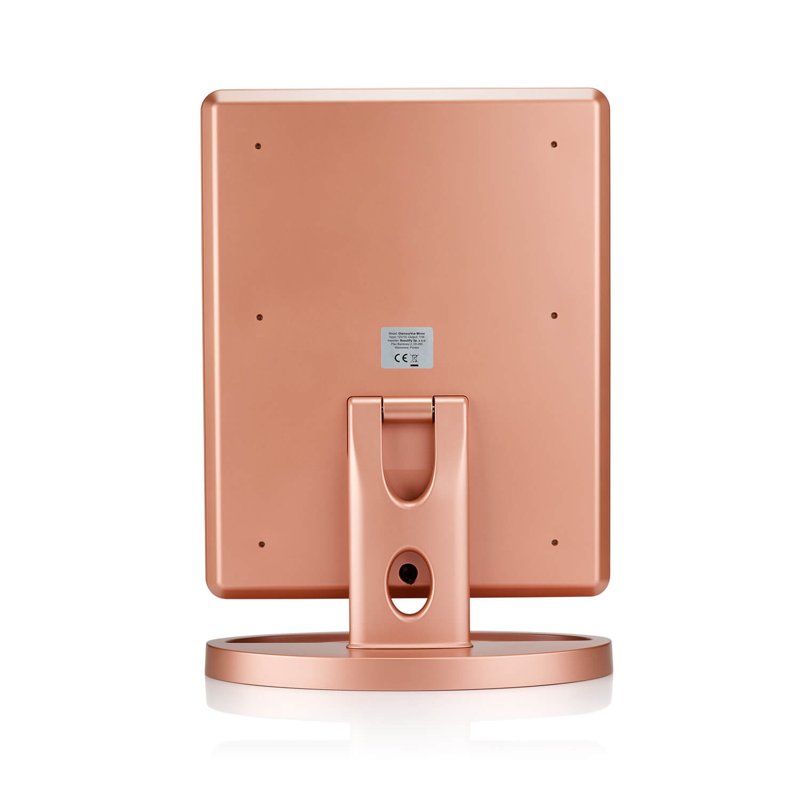 Den intuitiva touchkontrollen gör det enkelt att justera ljusstyrkan eller ljusläget med en enkel gest. Spegelns lutningsjusterbara design ger flexibilitet och idealiska vinklar för alla skönhetsrutiner, medan det inbyggda plug-in-systemet ger en pålitlig och kontinuerlig strömförsörjning, vilket eliminerar behovet av batterier.