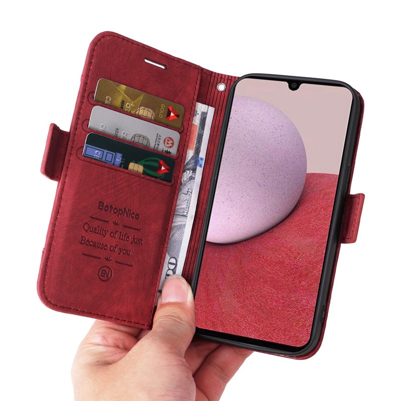 BETOPNICE 001 fodral för Samsung Galaxy A14 5G är det perfekta valet för att skydda din telefon. Tillverkat av högkvalitativt PU-läder och hård TPU, erbjuder detta fodral både stil och hållbarhet. Med smarta funktioner och en elegant design är det både praktiskt och snyggt.