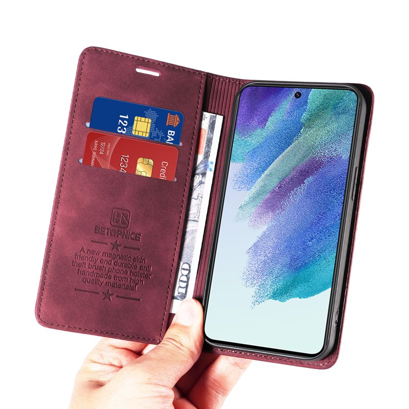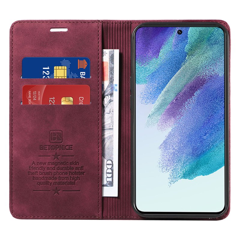 BETOPNICE 003 Fodral för Samsung Galaxy S22 5G är det perfekta valet för den som söker stil och funktionalitet. Tillverkat av äkta läder och TPU, erbjuder detta fodral ett omfattande skydd mot slitage och repor. Med sin eleganta röda design är det både praktiskt och snyggt.