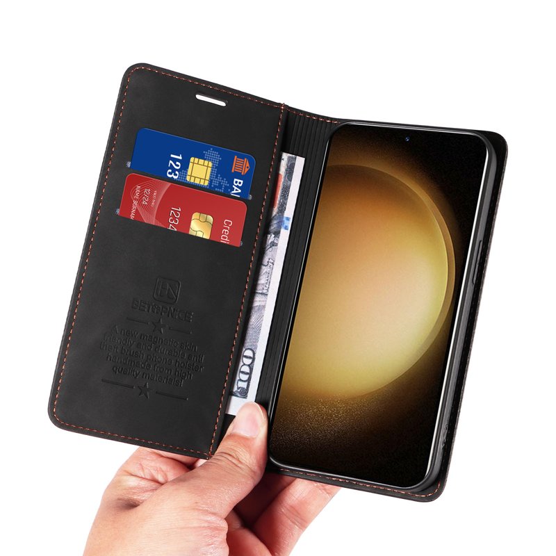 BETOPNICE 003 fodral för Samsung Galaxy S23 är det perfekta valet för den som söker stil och skydd. Tillverkat av äkta läder och TPU, erbjuder detta fodral en kombination av elegans och funktionalitet. Med smarta funktioner som RFID-säkerhet och en praktisk plånboksdesign, är detta fodral både säkert och praktiskt för din vardag.