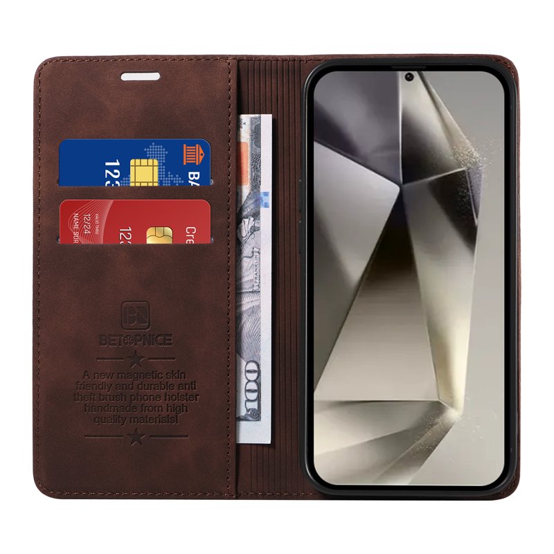 BETOPNICE 003 för Samsung Galaxy S25 Ultra Fodral Äkta läder - Brun