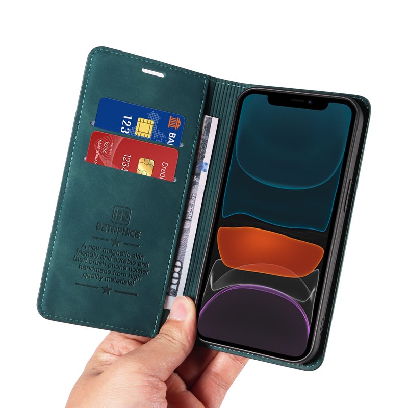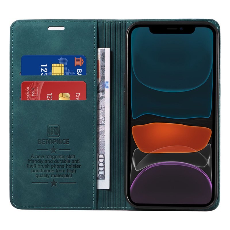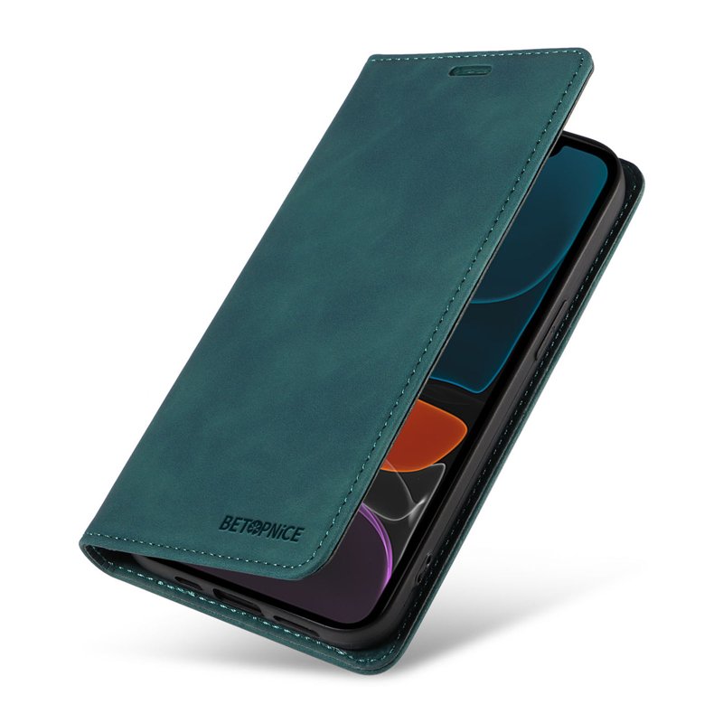 BETOPNICE 003 iPhone 12 / 12 Pro Fodral i äkta läder är den perfekta lösningen för att skydda din telefon. Med sitt eleganta gröna utseende och funktionella design erbjuder detta fodral både stil och säkerhet. Det är tillverkat av högkvalitativa material som skyddar mot slitage och skador. Håll din iPhone säker och organiserad med detta praktiska fodral.