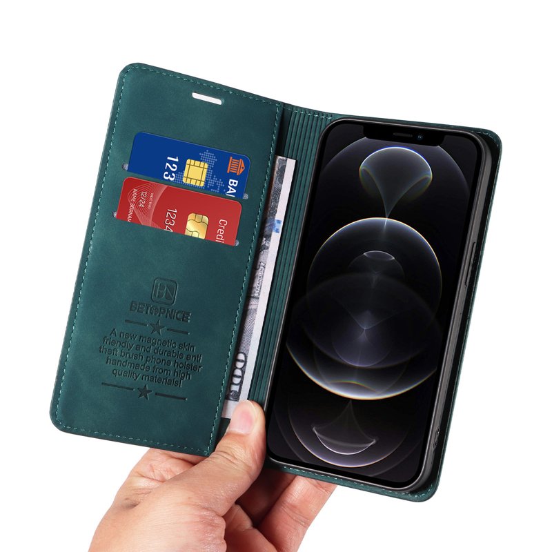 BETOPNICE 003 iPhone 12 Pro Max Fodral i äkta läder är den perfekta lösningen för att skydda din telefon. Med ett stilrent och hållbart design erbjuder detta fodral både funktionalitet och elegans. Det är tillverkat av högkvalitativt PU-läder och TPU, vilket ger ett utmärkt skydd mot slitage och repor.