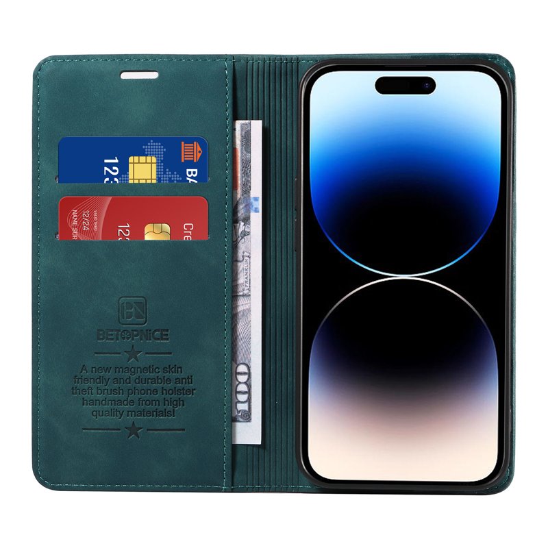 BETOPNICE 003 iPhone 15 Pro Max Fodral i PU-läder är det perfekta valet för att skydda din telefon. Med en stilren design och funktionella egenskaper erbjuder detta fodral både säkerhet och bekvämlighet. Det är tillverkat av högkvalitativt PU-läder och TPU, vilket ger ett pålitligt skydd mot slitage och repor.