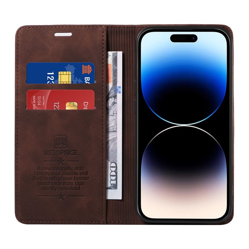 BETOPNICE 003 iPhone 15 Pro Skal RFID Blocking PU Läder - Brun