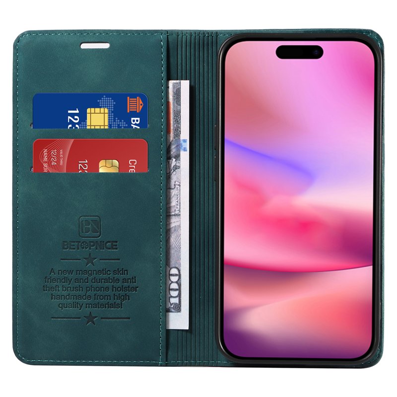 BETOPNICE 003 iPhone 16 Fodral i Äkta Läder är den perfekta lösningen för att skydda din telefon. Med ett stilrent och hållbart design i grön äkta läder, erbjuder detta fodral både funktionalitet och elegans. Det är utformat för att ge ett heltäckande skydd mot dagligt slitage och skador.