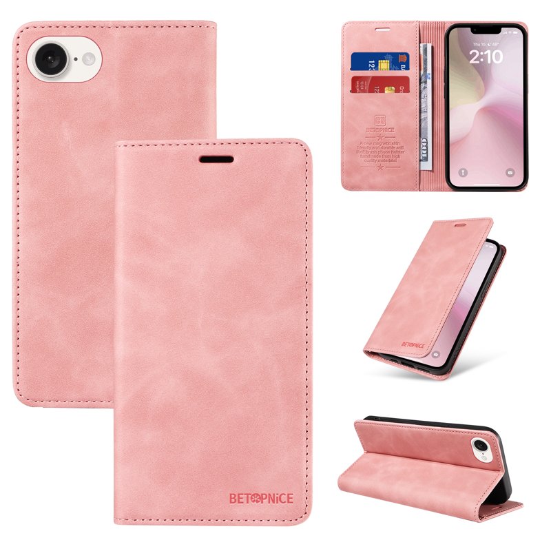 BETOPNICE 003 iPhone 16e Wallet Fodral i äkta läder är den perfekta lösningen för att skydda din telefon samtidigt som du har dina viktigaste kort och kontanter nära till hands. Med en elegant rosa design kombinerar detta fodral stil och funktionalitet. Det erbjuder ett omfattande skydd och smarta funktioner som gör din vardag enklare.