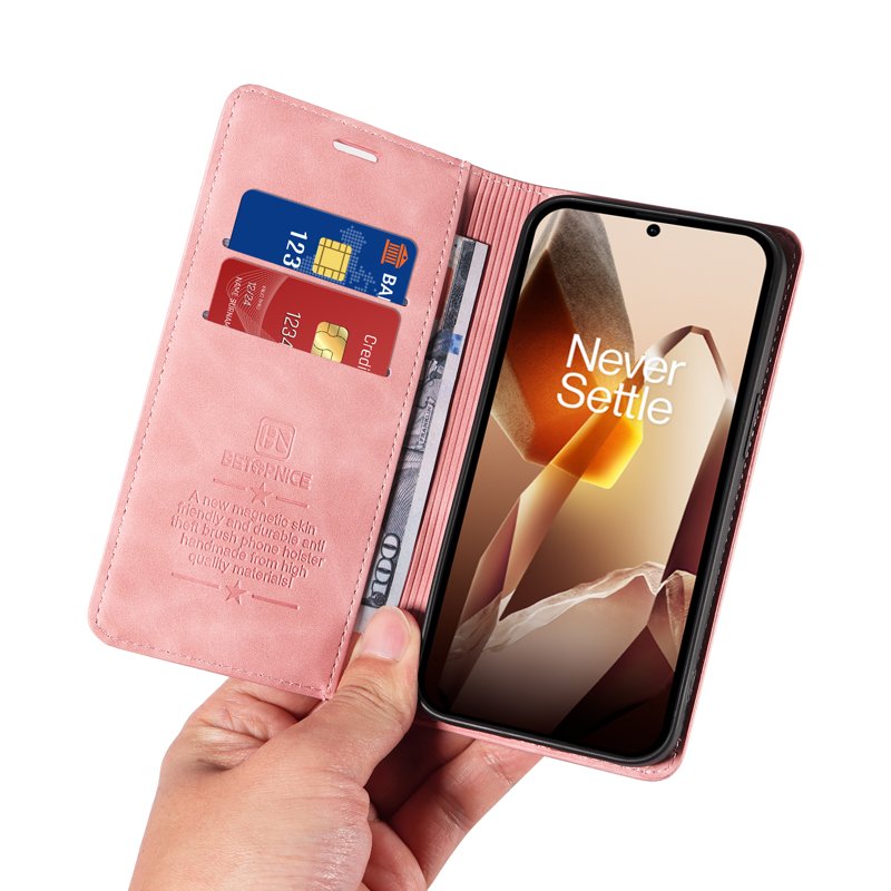 Handla denna produkt BETOPNICE 003 OnePlus 13 Fodral i Äkta Läder - Rosa