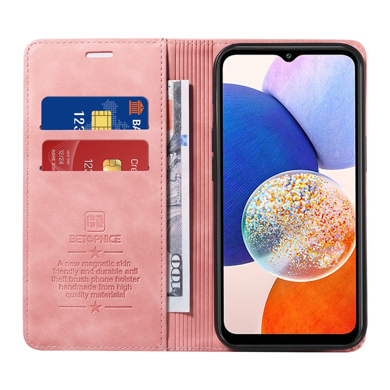 BETOPNICE 003 Samsung Galaxy A14 Fodral i äkta läder är den perfekta lösningen för att skydda din telefon. Med en stilren design och funktionella egenskaper erbjuder detta fodral både säkerhet och bekvämlighet. Det är tillverkat av högkvalitativt PU-läder och TPU, vilket gör det både hållbart och elegant.