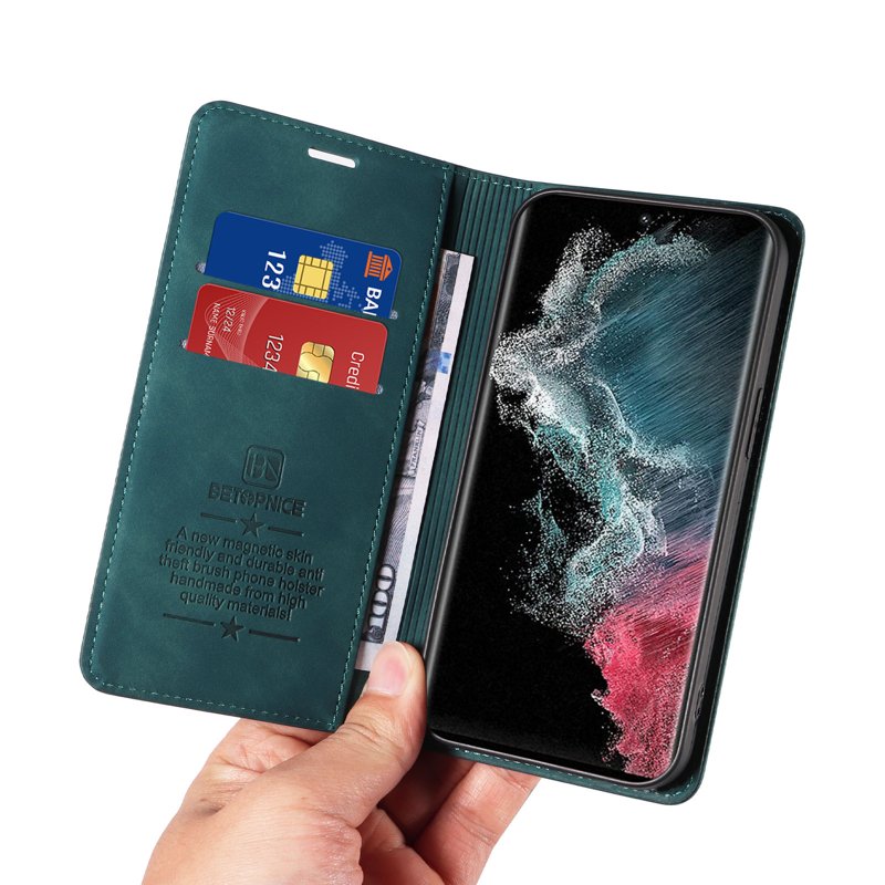 BETOPNICE 003 Samsung Galaxy S23 Ultra Fodral Äkta läder - Grön