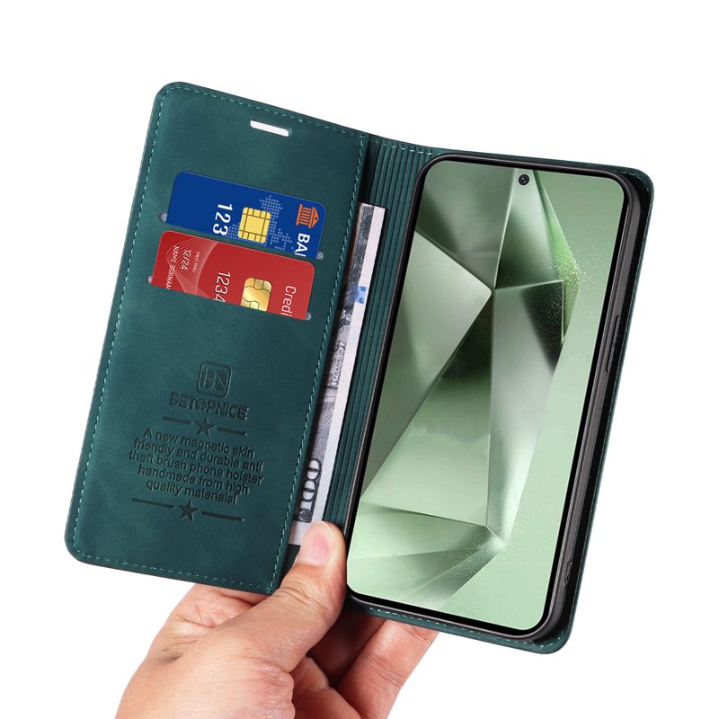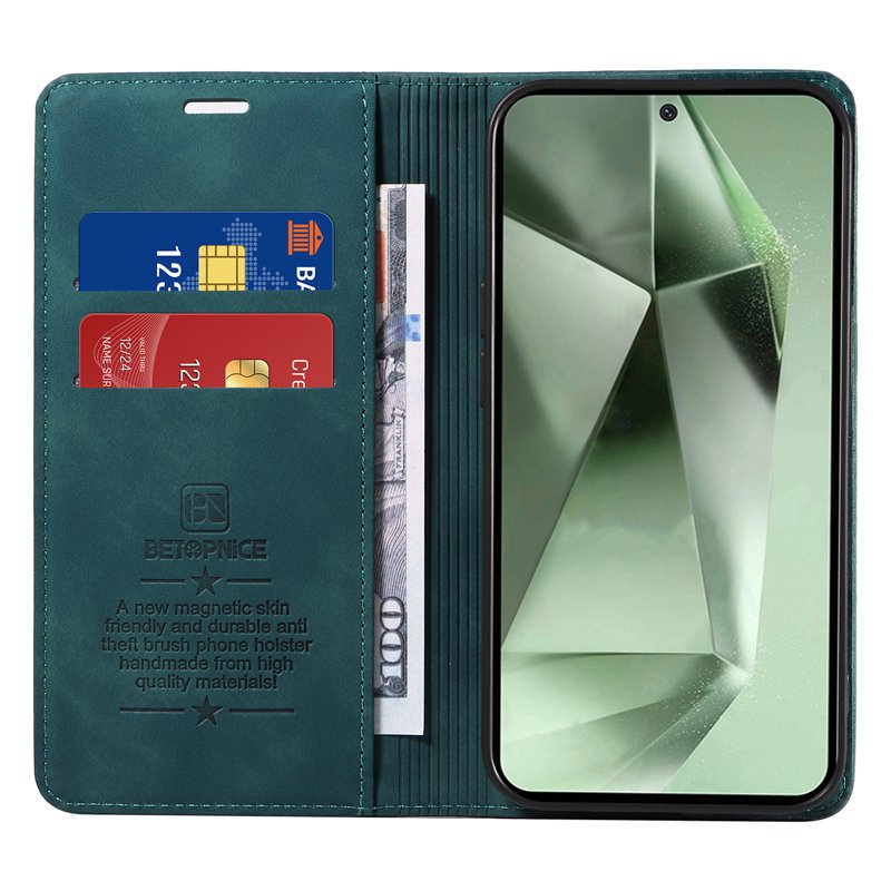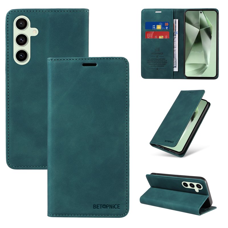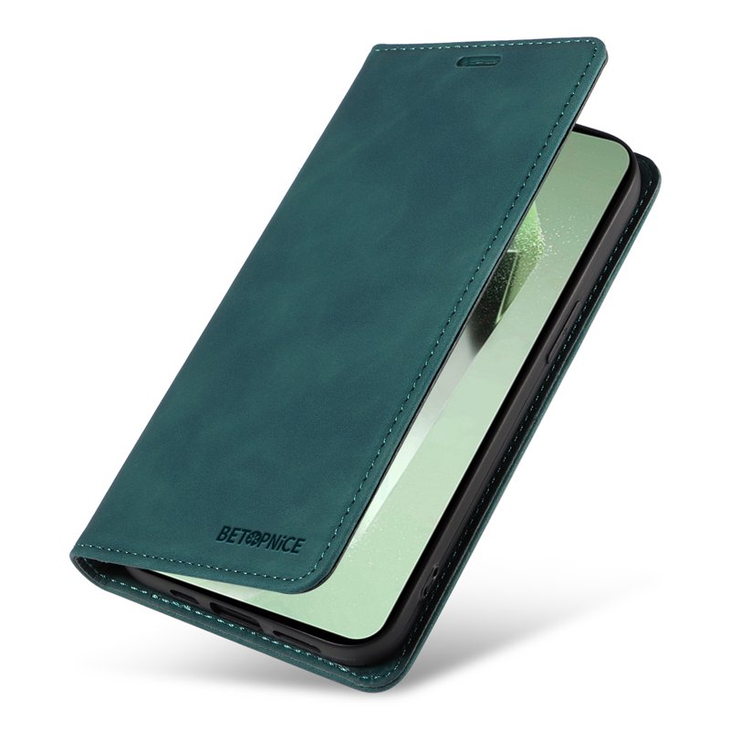 BETOPNICE 003 Samsung Galaxy S24 FE Fodral i äkta läder är det perfekta valet för dig som vill skydda din telefon med stil. Detta fodral kombinerar funktionalitet och elegans. Med sin gröna färg och smarta design erbjuder det både skydd och bekvämlighet i vardagen.