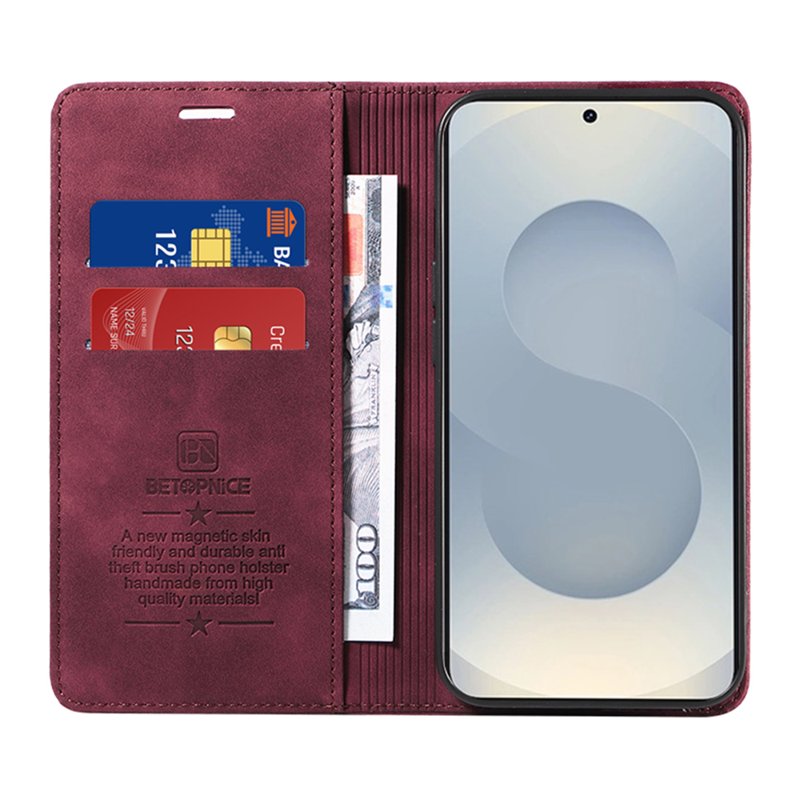 BETOPNICE 003 Samsung Galaxy S25 Edge Fodral i äkta läder är den perfekta lösningen för att skydda din telefon. Med sin eleganta röda design och funktionella egenskaper erbjuder detta fodral både stil och säkerhet. Det är tillverkat av högkvalitativa material som ger ett omfattande skydd mot dagligt slitage och skador.